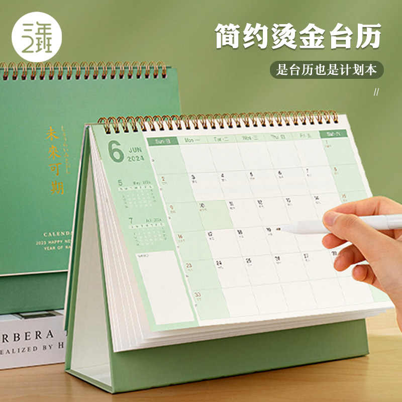 三年二班简约烫金2024年新款台历学生办公室桌面记事本备忘录打卡计划2023年月历考研商务创意倒计时日历摆件