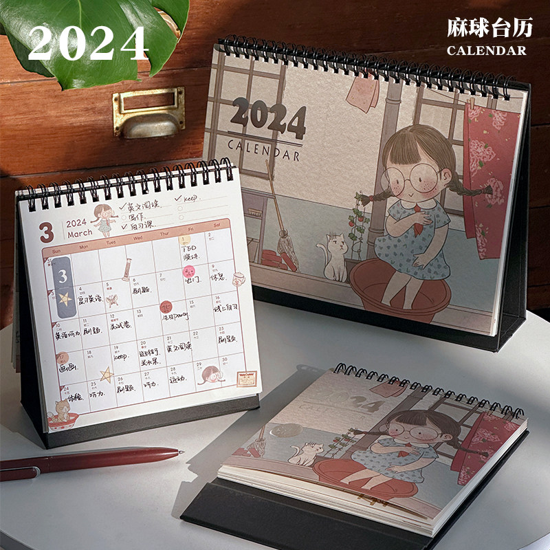 三年二班麻球台历2024年新款创意桌面摆件活动备忘录计划月历日K
