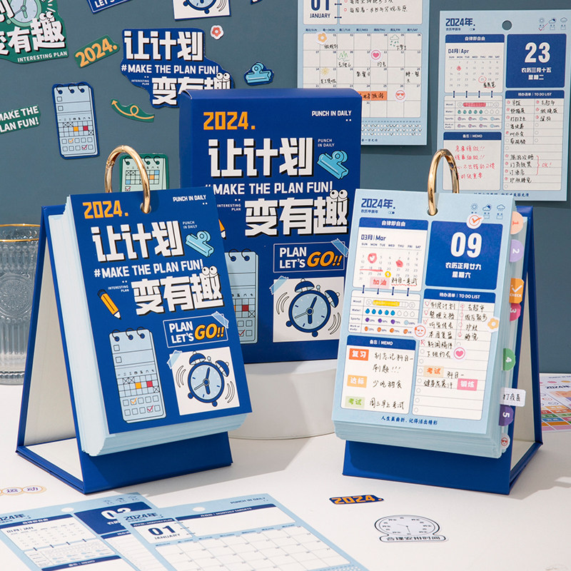 2024年计划日历每日自律打卡趣味台历计划本办公室桌面小摆件高考考研倒计时记事本新款月历可定制手撕单向历