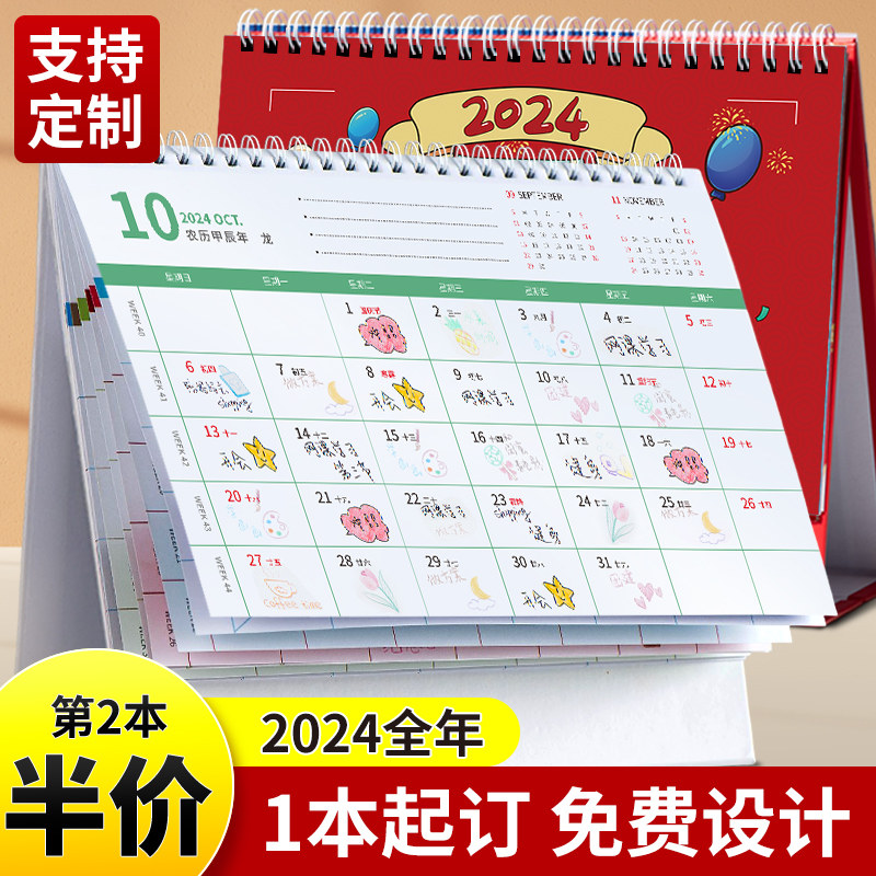 2024年台历定制照片日历订制来图制作diy宝宝情侣明星企业公司商务印logo龙年月历挂历商务办公创意新年礼物