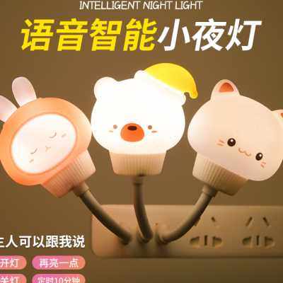 人工智能语音控制小夜灯卧室睡眠声控感应灯家用USB台灯床头夜光