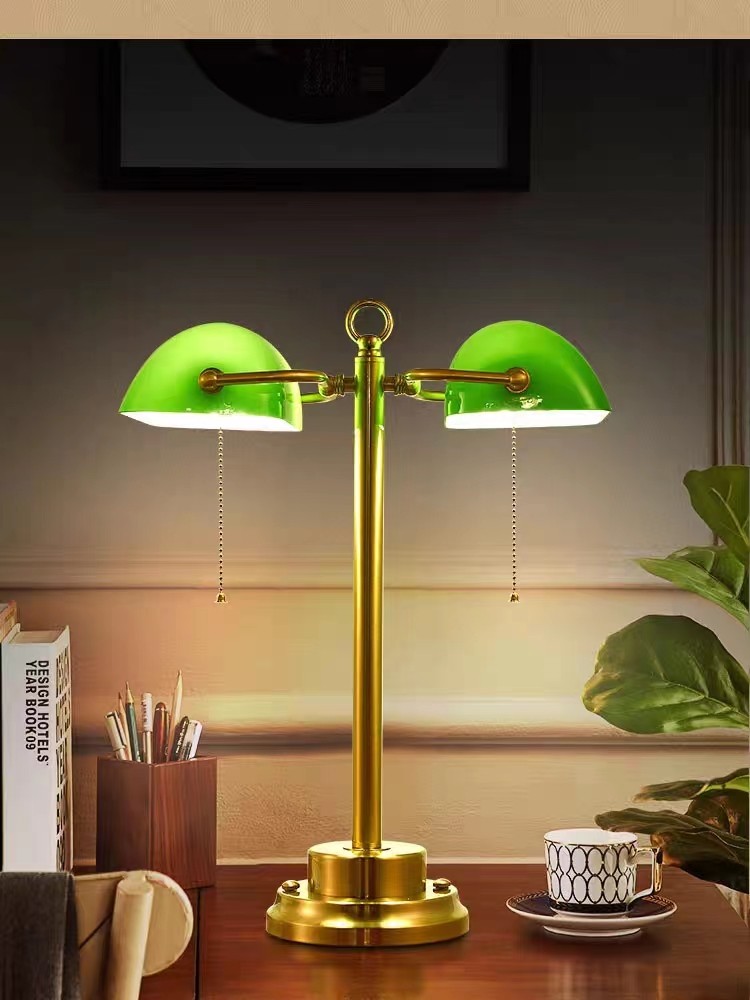 图书馆用 美式双头翠绿玻璃灯罩台灯 书房书桌办公阅读护眼台灯