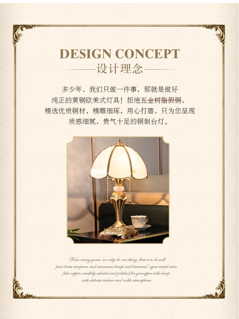 欧式台灯奢华复古纯铜玉石家用别墅卧室床头柜新中式轻奢创意客厅