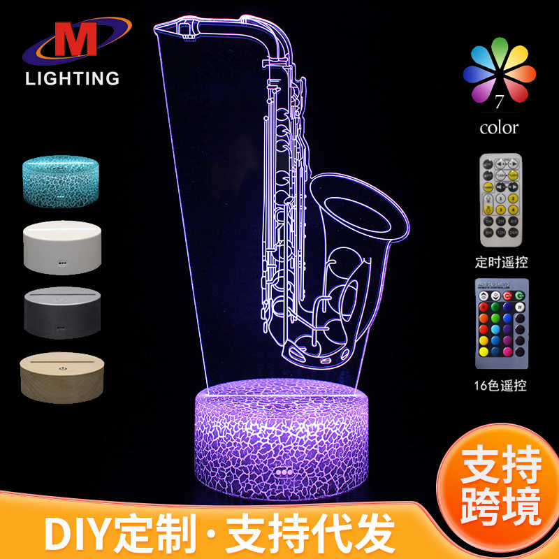 跨境乐器钢琴架子鼓系列3DLED台灯创意礼品视觉灯七彩小夜灯