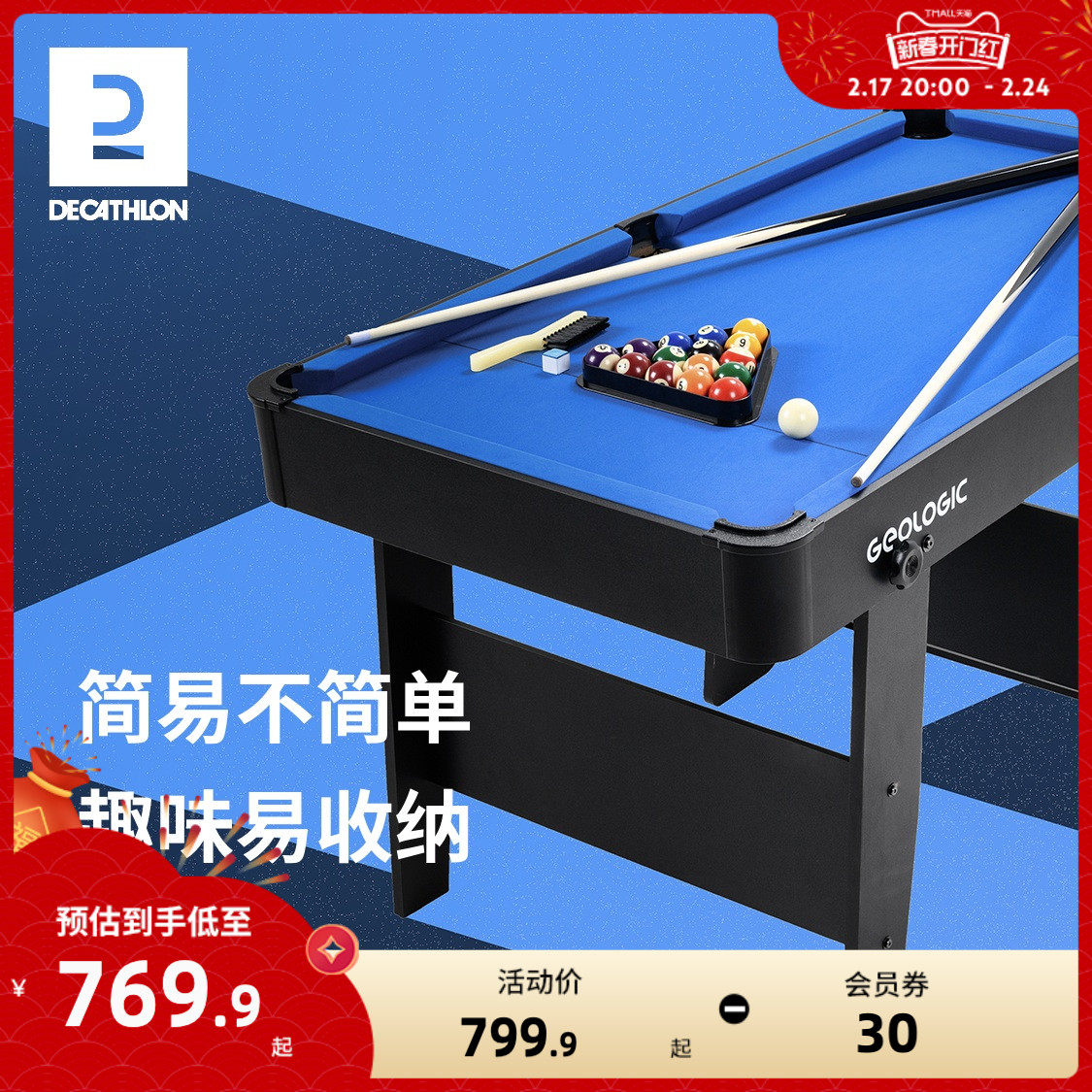 迪卡侬台球桌家用儿童成人可折叠小型家庭美式桌球台室内娱乐IVH3