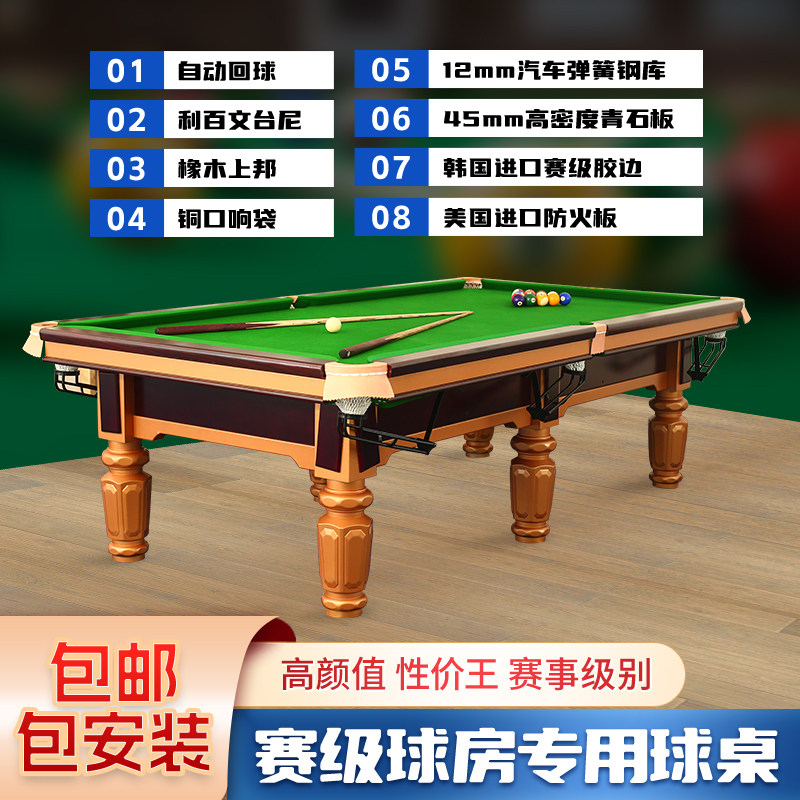 腾勃台球桌标准型家用室内桌球台标准型成人商用球房中式黑八桌子
