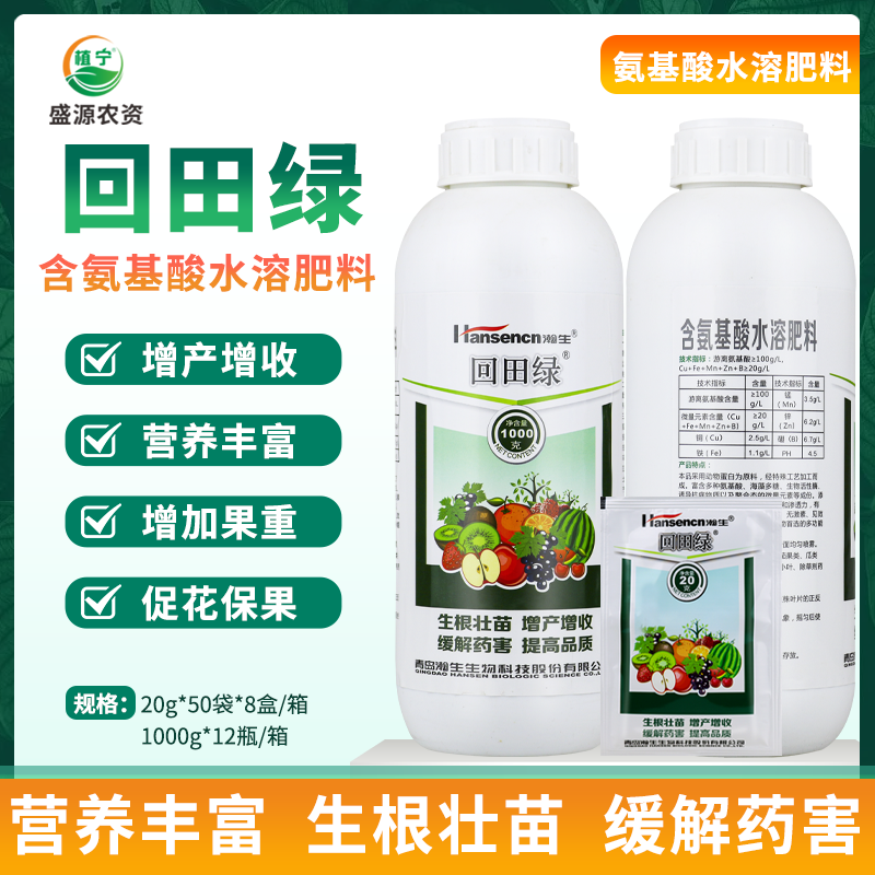 青岛瀚生回田绿含氨基酸水溶肥料叶面肥铜铁锰锌喷雾冲施滴灌