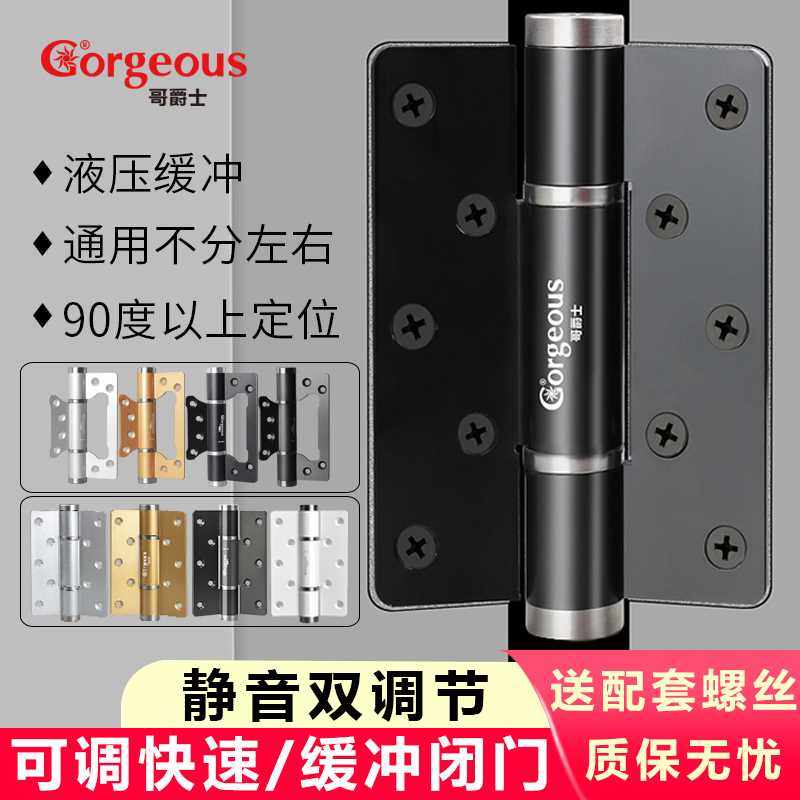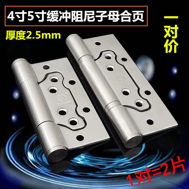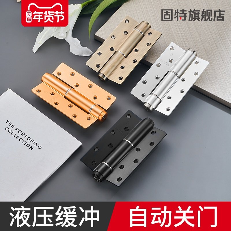 亿固弹簧铰链自动关闭门缓冲液压子母合页不锈钢4寸5寸免开槽隐形