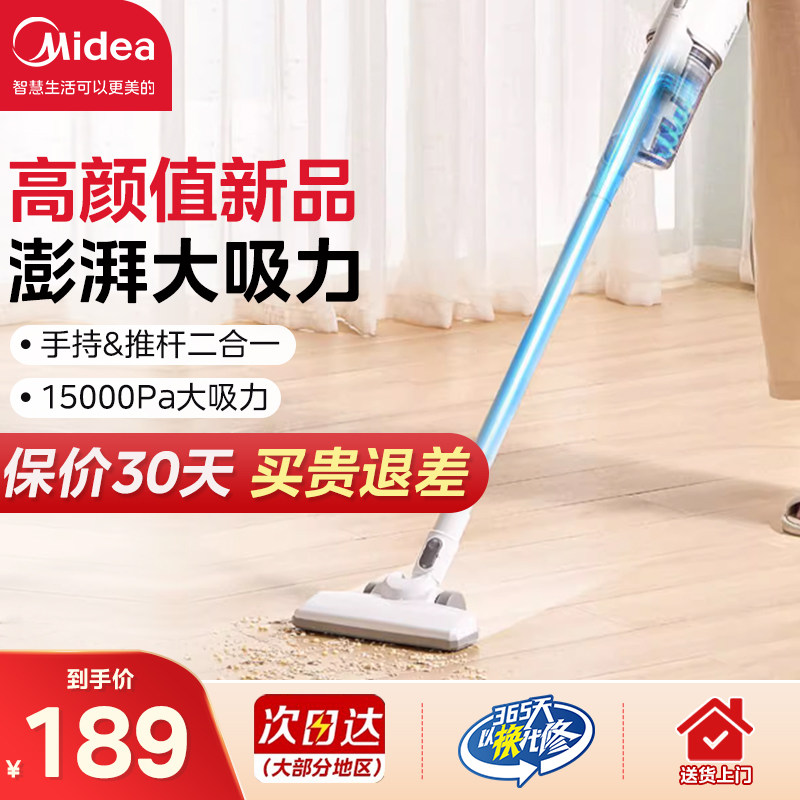 美的吸尘器家用小型手持式大吸力除螨机地毯猫毛超强力有线除尘机