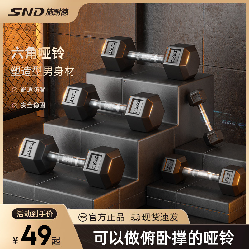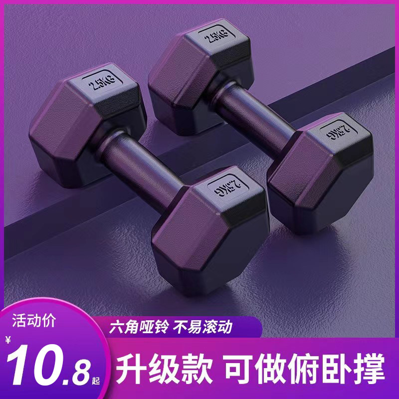 六角哑铃男士健身家用锻炼器材女学生宿舍小哑铃一对包胶亚玲套装