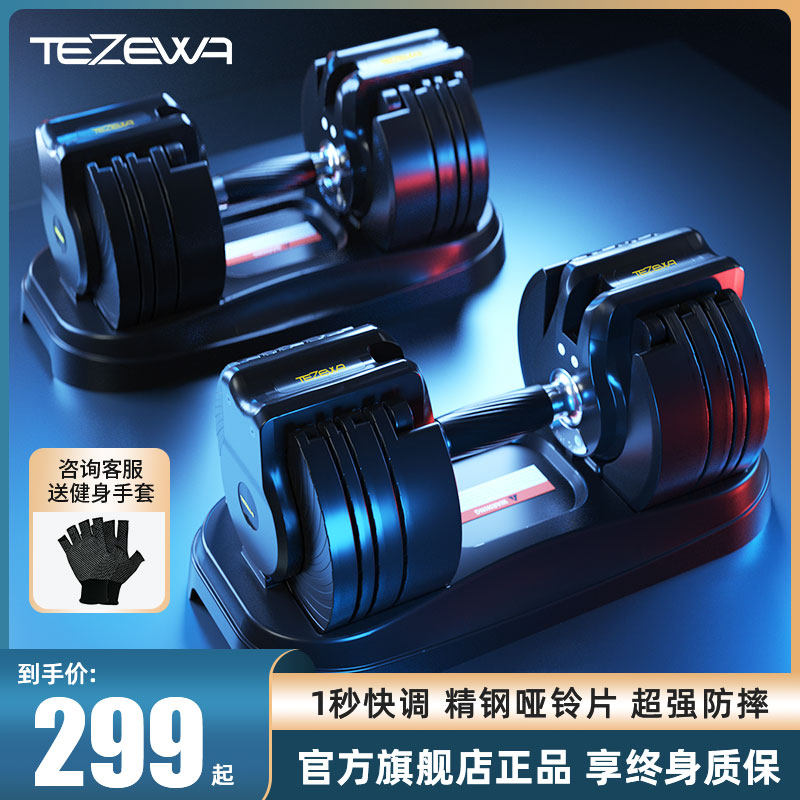 特泽瓦电镀纯钢可调节小哑铃男女士健身家用宿舍大重量杠铃套装