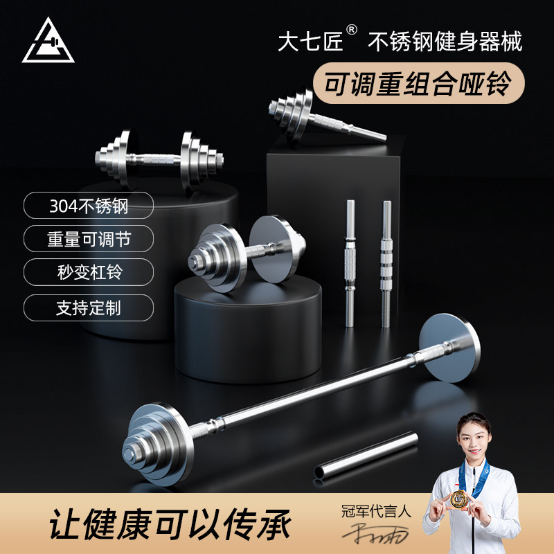 大七不锈钢哑铃男士健身家用组合杠铃套装可调节重量居家锻炼器材