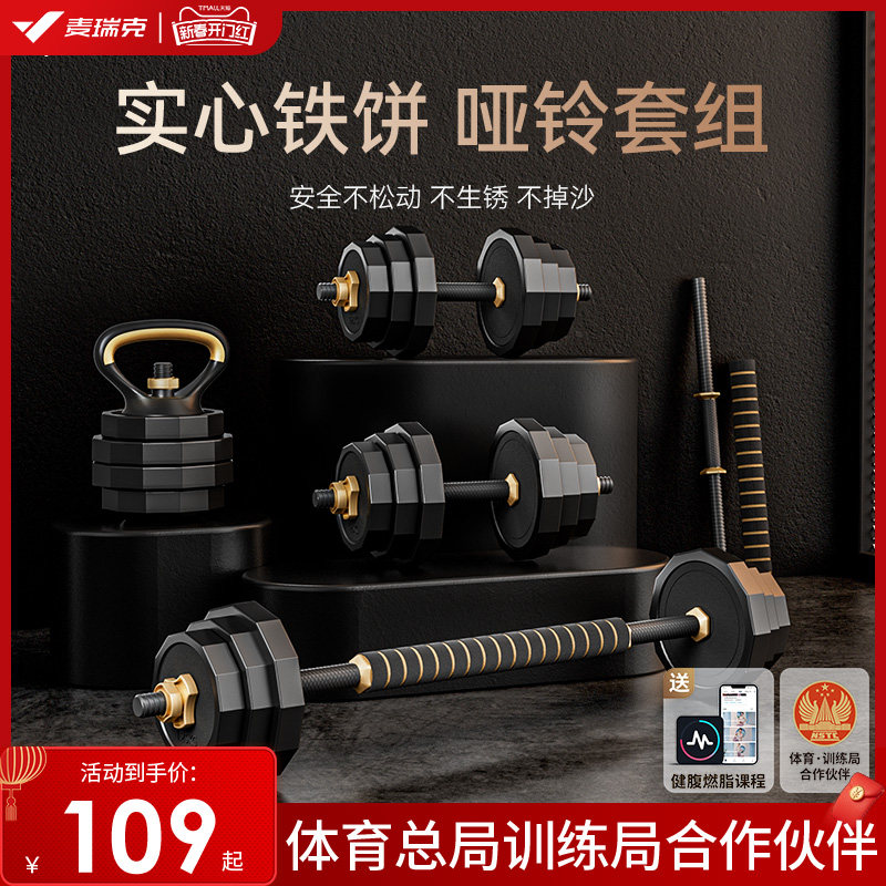 麦瑞克哑铃男士家用专业健身训练器材可调节重量杠铃壶铃套装组合