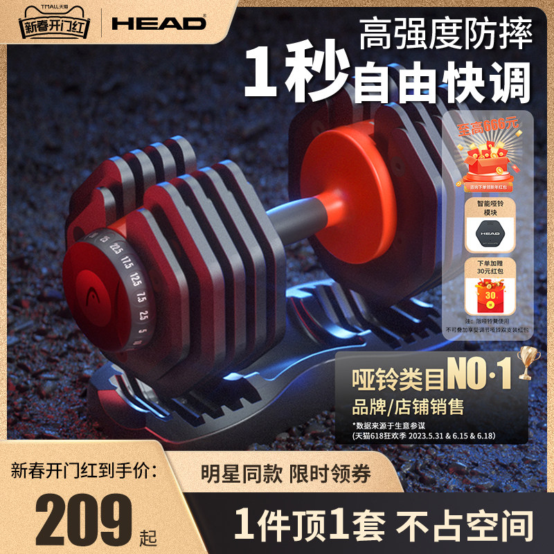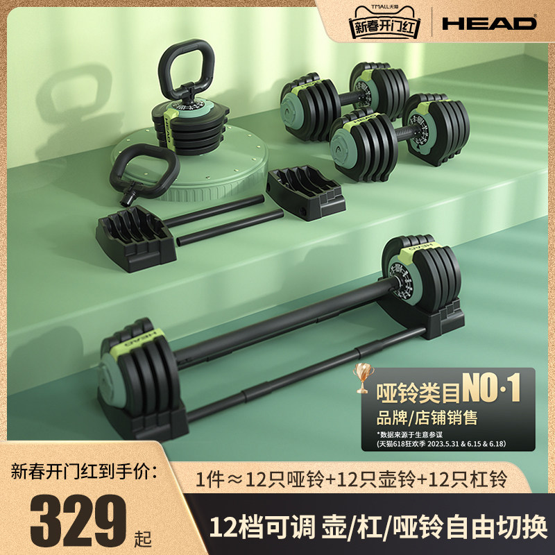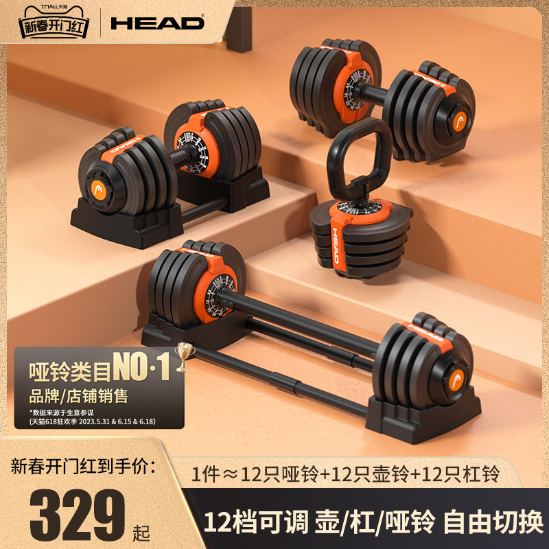 HEAD海德可调节哑铃杠壶铃家用套装组合男士健身女士锻炼纯钢器材