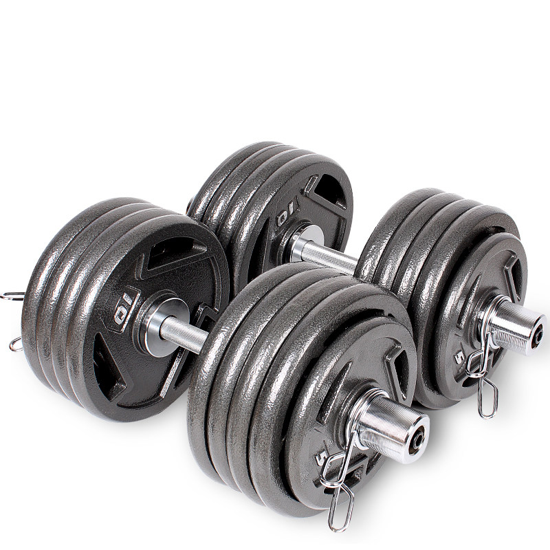烤漆纯铁三孔手抓片奥杆哑铃家用男士健身一对练臂肌大重量可调节