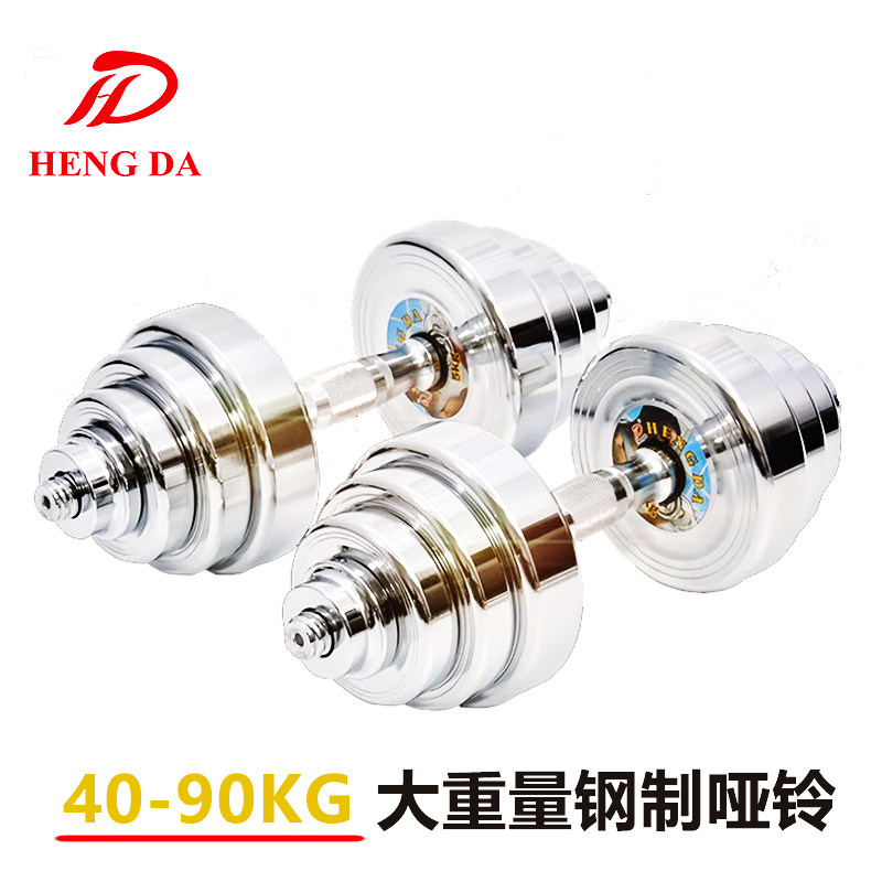 大重量电镀纯钢制哑铃男士家用健身405080100KG运动器材臂肌调节