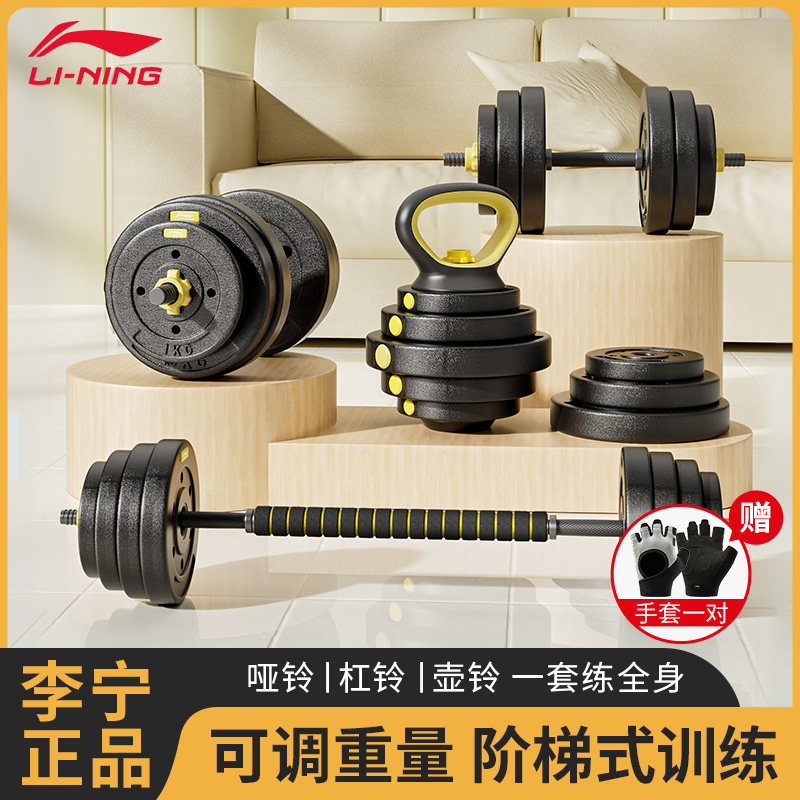 李宁哑铃男士健身家用可调节重量杠铃亚玲男宿舍壶铃套装锻炼器材