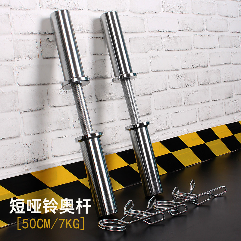 实心电镀哑铃杆短奥杆杠铃杆50cm杆家用健身器材男卡簧单只练臂肌