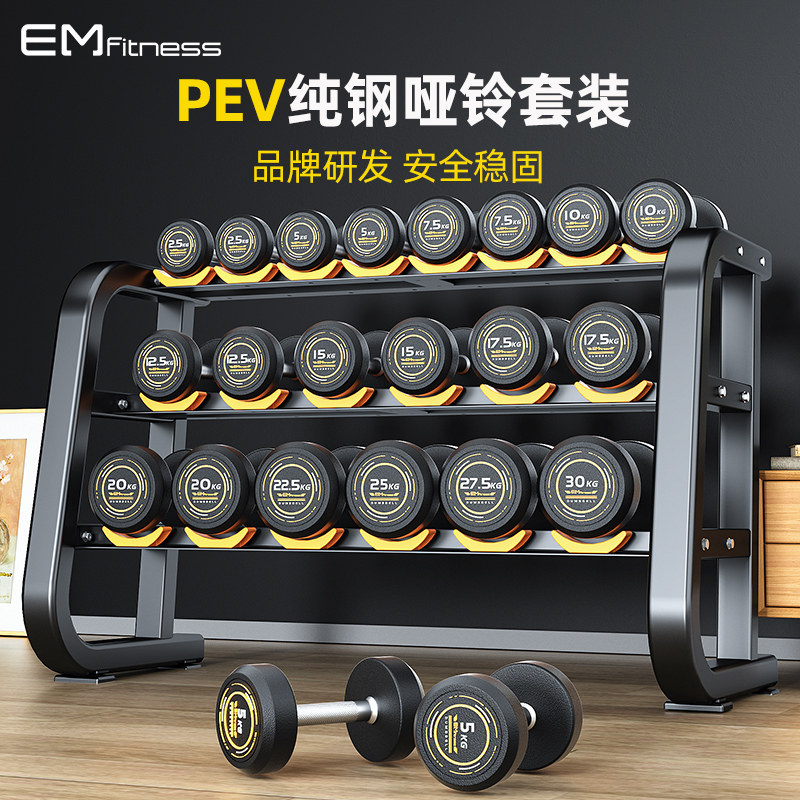 哑铃健身男士家用5kg10kg一对金属实心铁防锈组合套装青少年举重