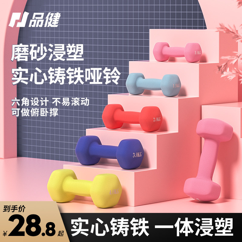 品健哑铃女士健身家用器材纯铁小哑铃套装组合儿童小学练臂肌男