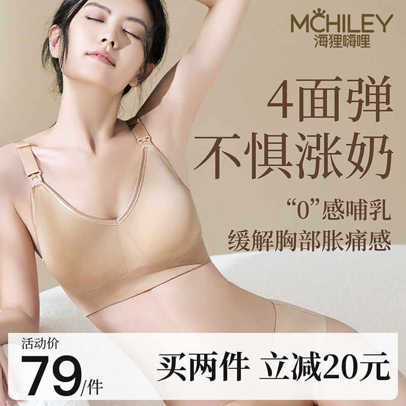 海狸哺乳内衣产后喂奶专用防下垂聚拢文胸大胸码孕妇浦乳期睡觉穿