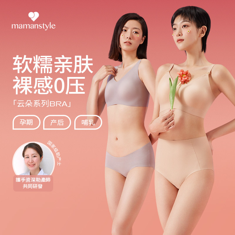 【达人专享】婧麒25H无尺码内衣轻薄透气孕妇哺乳文胸无痕舒适