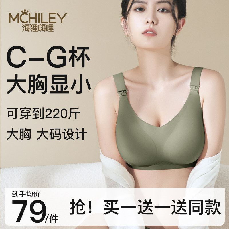 【蜜桃兔兔】婧麒哺乳内衣上开扣孕妇大胸显小收副乳春秋季文胸