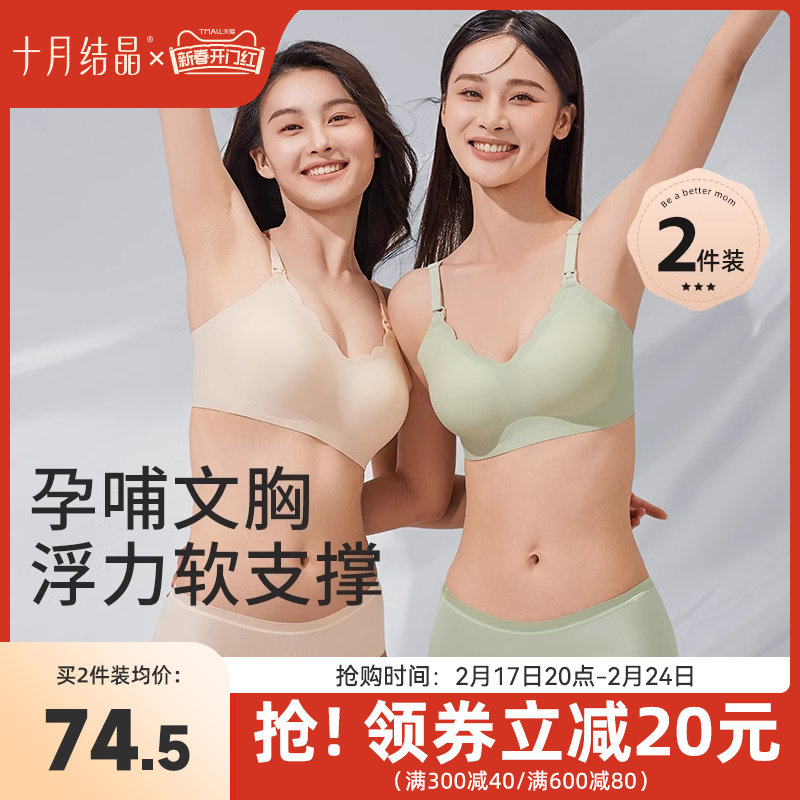 十月结晶孕妇哺乳内衣怀孕期产后浮力条文胸聚拢防下垂胸罩2件装