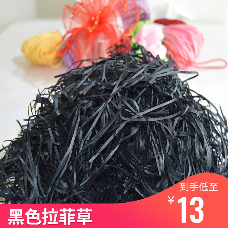 吉陶黑色拉菲草填充物碎纸丝 礼盒化妆品喜糖盒水果填充纸条包邮