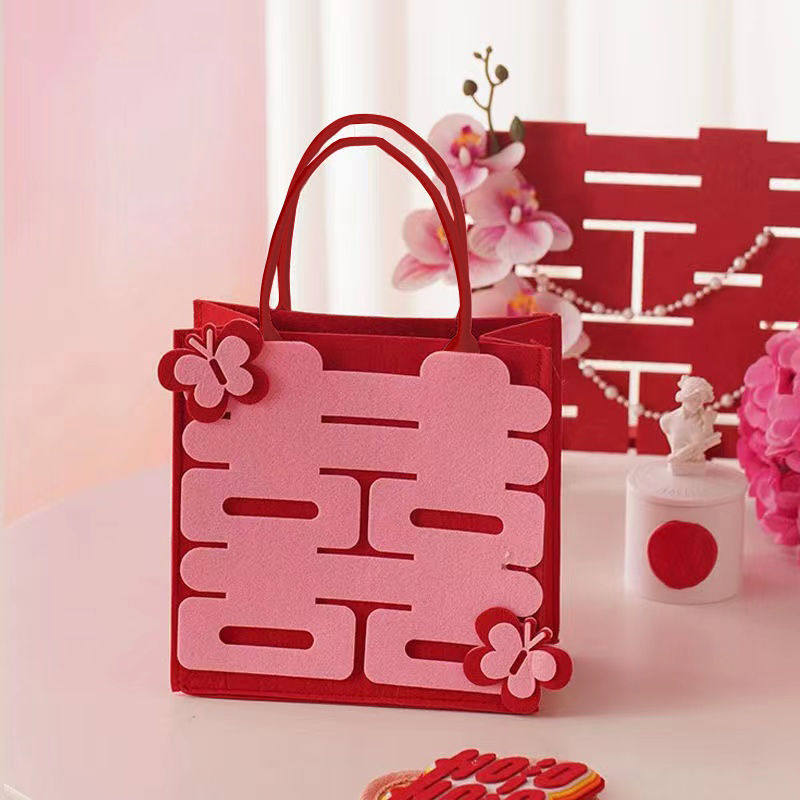 新中式双喜字结婚伴娘伴手礼袋礼品袋粉色喜糖盒新婚礼袋结婚用品
