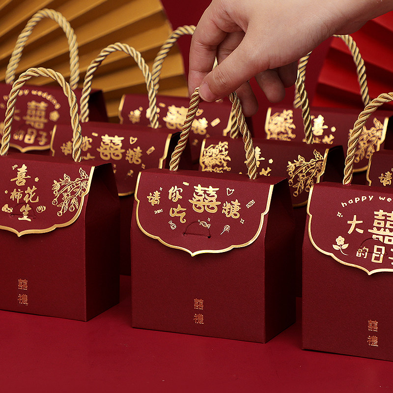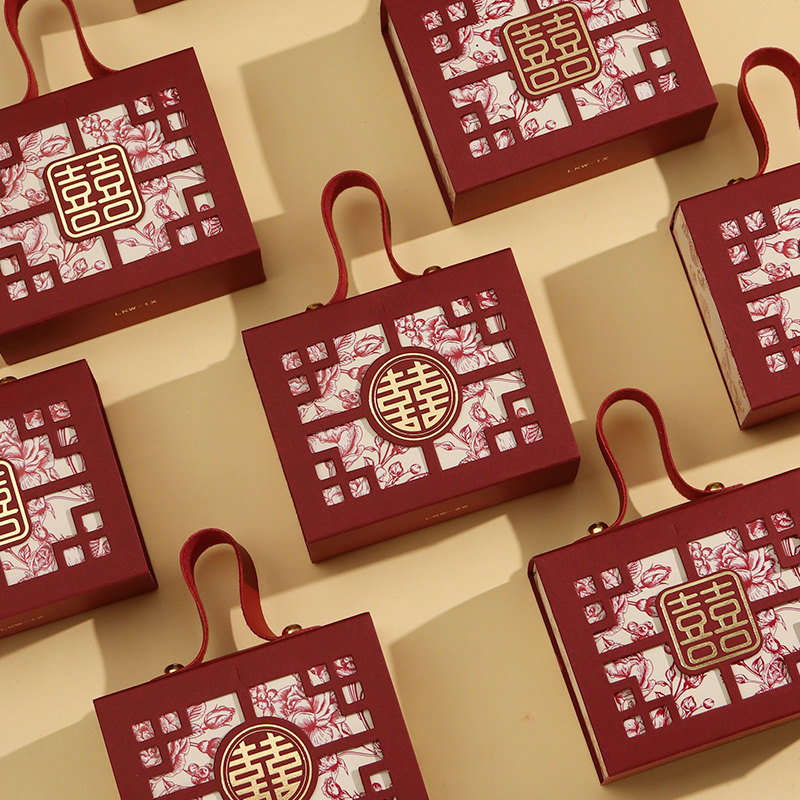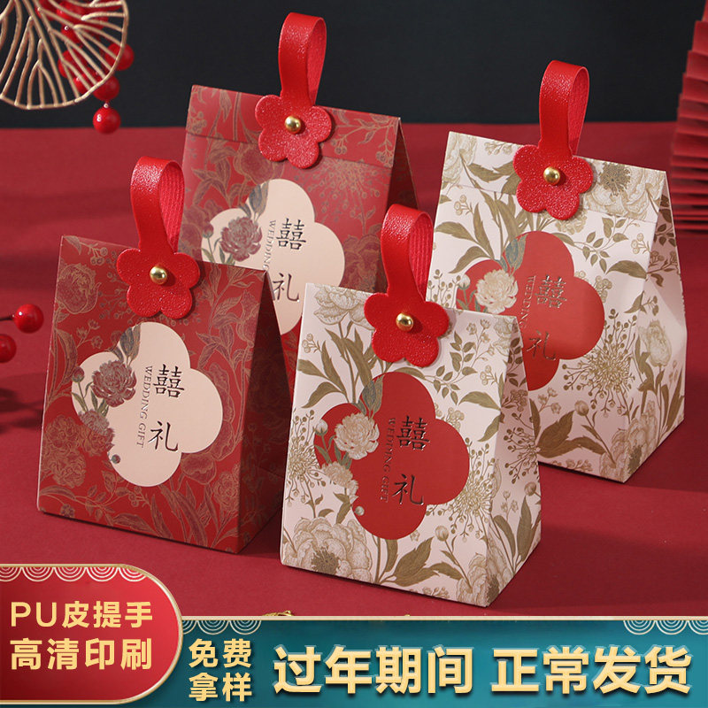 结婚喜糖盒子订婚糖果盒空盒婚礼高级感伴手礼手提中式礼盒包装盒