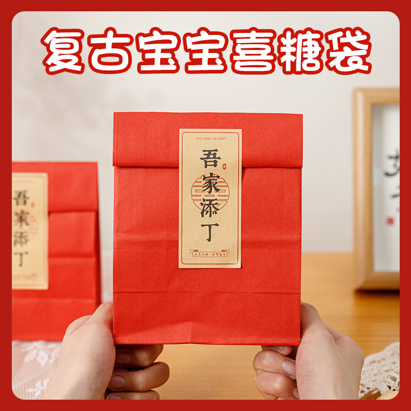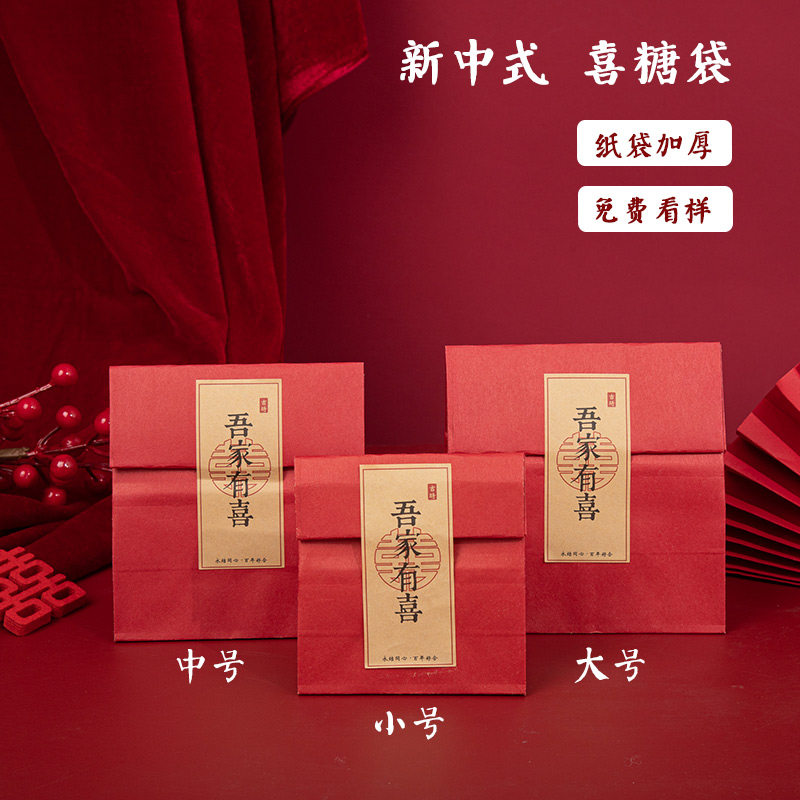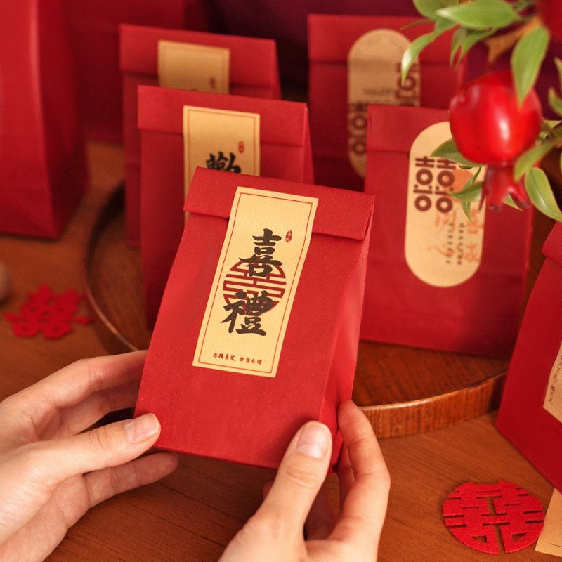 复古牛皮纸喜糖袋子红色结婚中国分盒子中国风婚礼吾家有喜中式