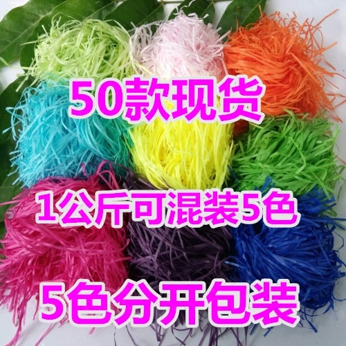 包邮拉菲草喜糖盒填充物礼品盒彩色碎纸丝水果副食化妆品包装材料