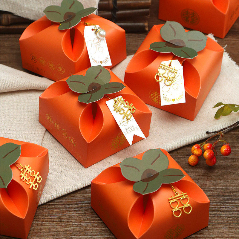 结婚糖果盒创意柿子喜糖盒高级感ins风婚礼伴手礼盒喜糖袋包装盒
