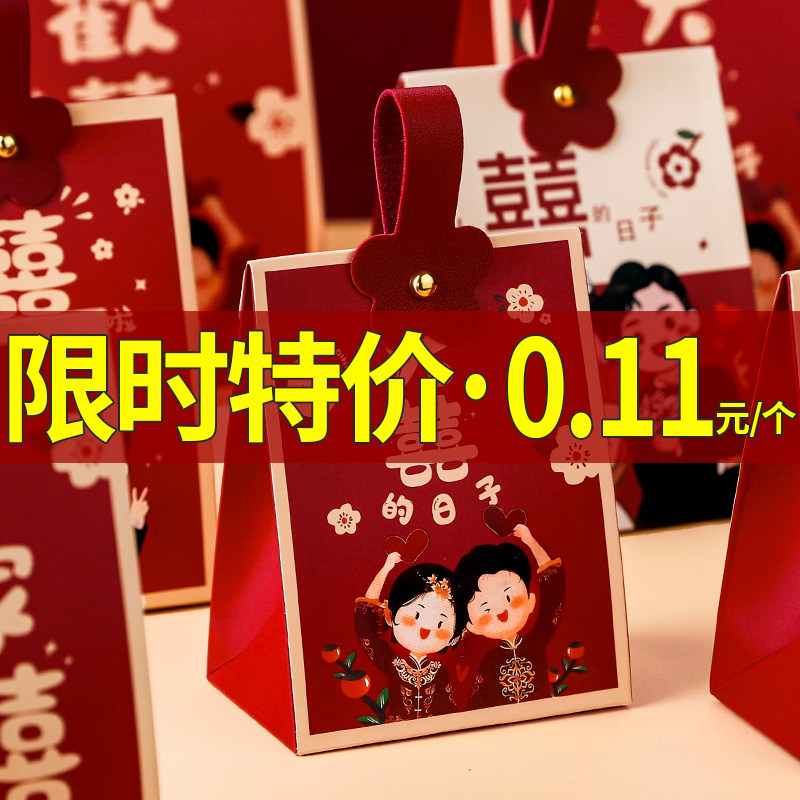 喜糖盒子结婚2023订婚糖果盒空盒婚礼手提糖袋子伴手礼盒包装盒子