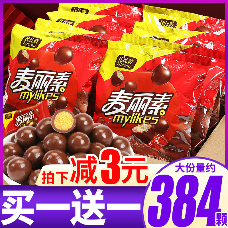 比比赞麦丽素巧克力豆喜糖婚糖果圣诞节网红零食批发(代可可脂)