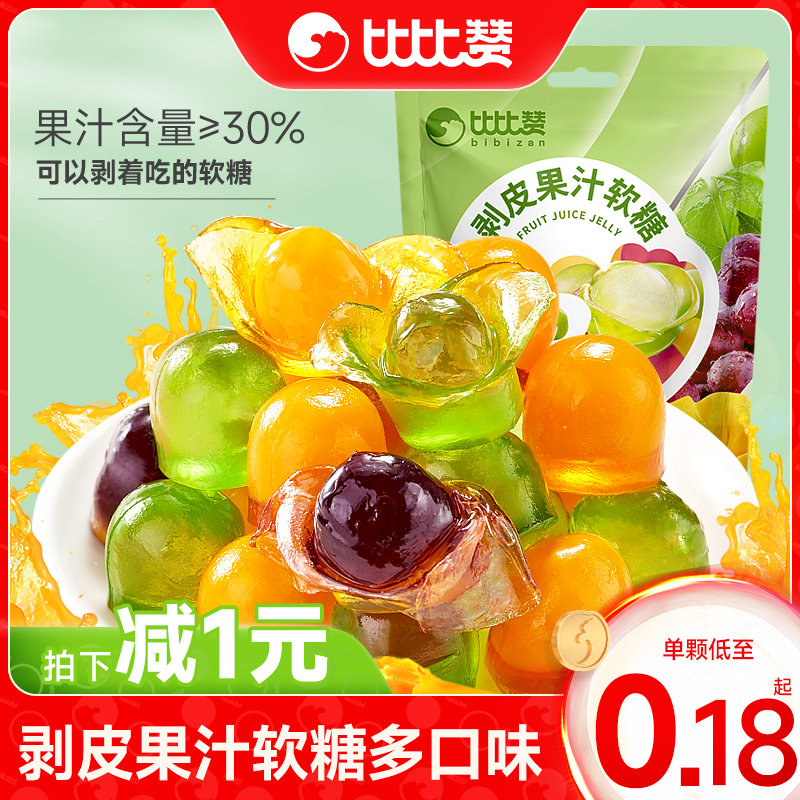 比比赞剥皮果汁软糖水果味qq糖橡皮糖喜糖果过年儿童年货小零食品