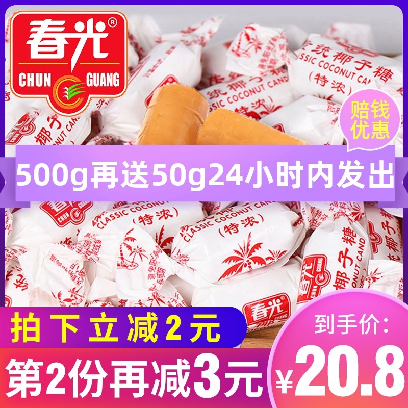 春光特制椰子糖500g散装正宗海南特产传统特浓椰奶糖果老包装喜糖