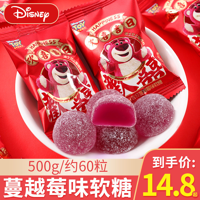 迪士尼草莓熊欢喜吉日蔓越莓味软糖果结婚喜糖散装圣诞节生日零食