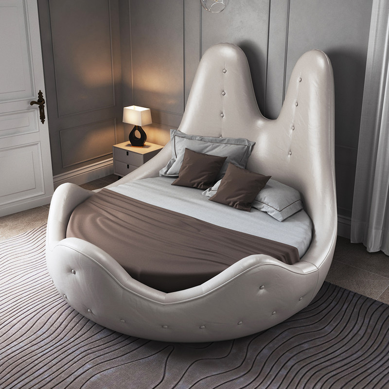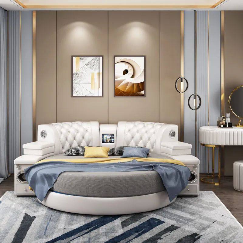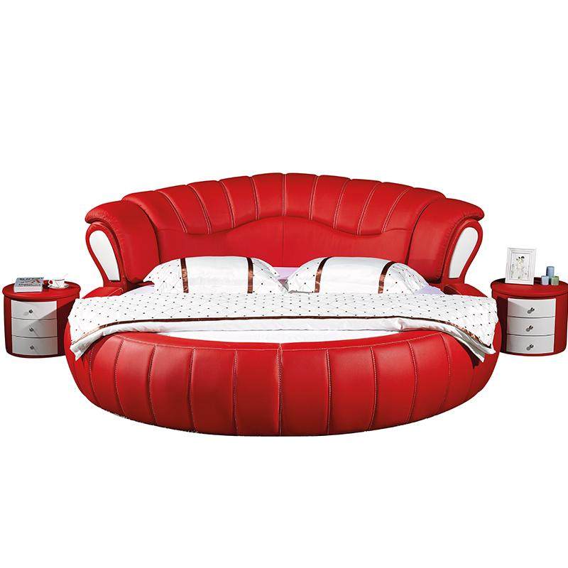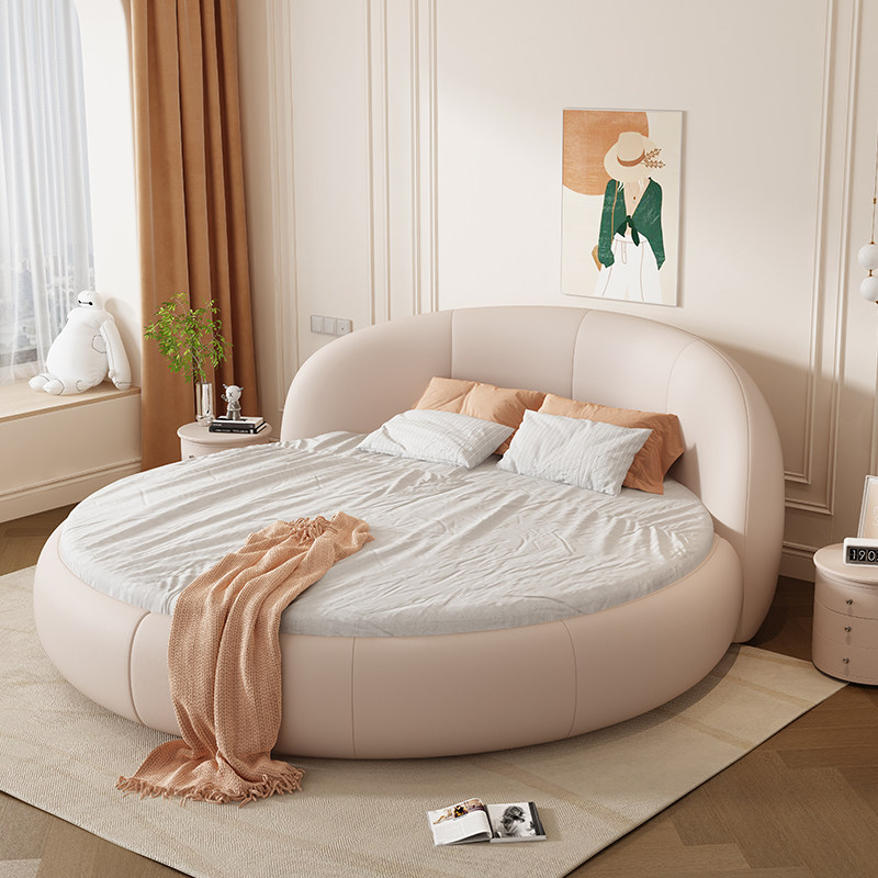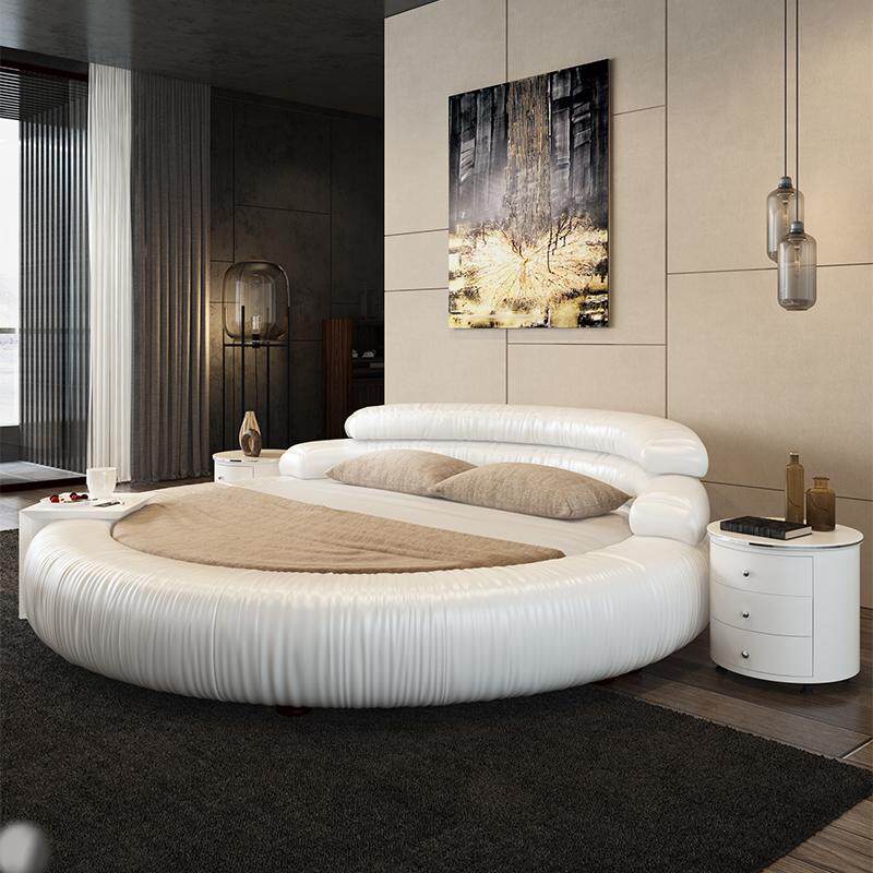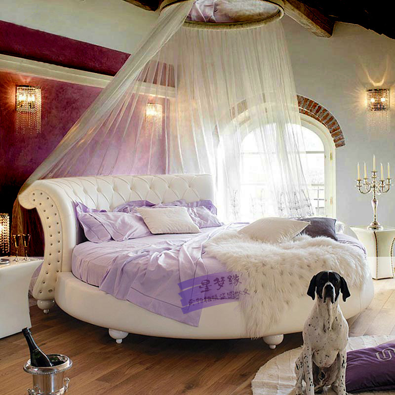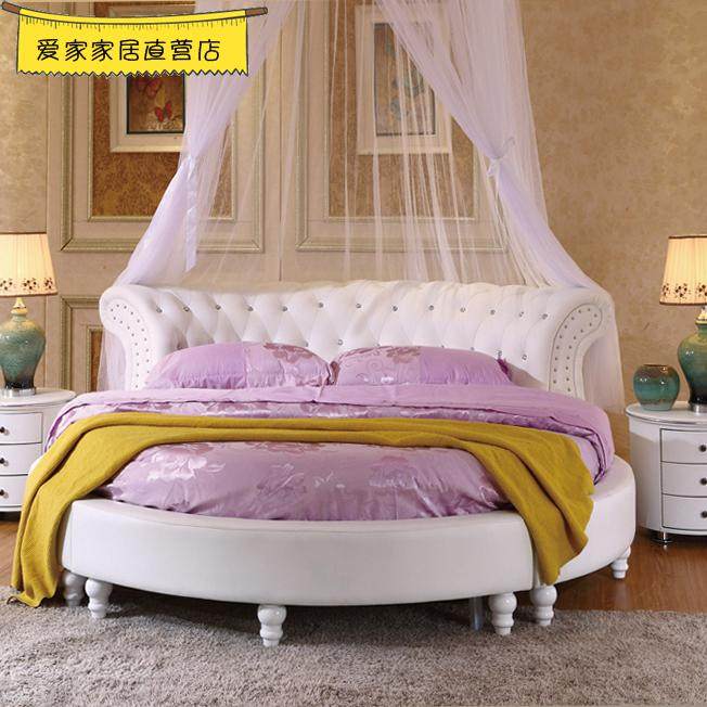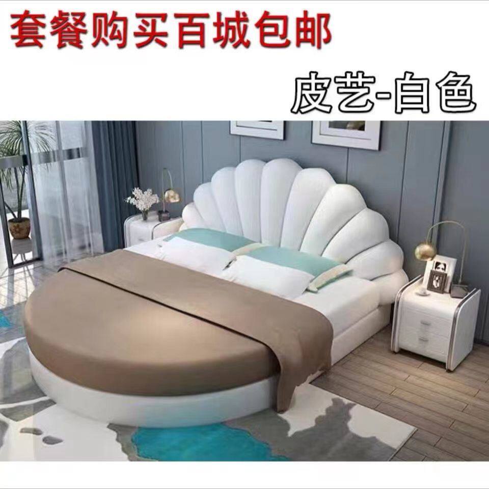 欧式真皮情侣大圆床双人现代简约小户型ins网红圆形公主卧室婚床