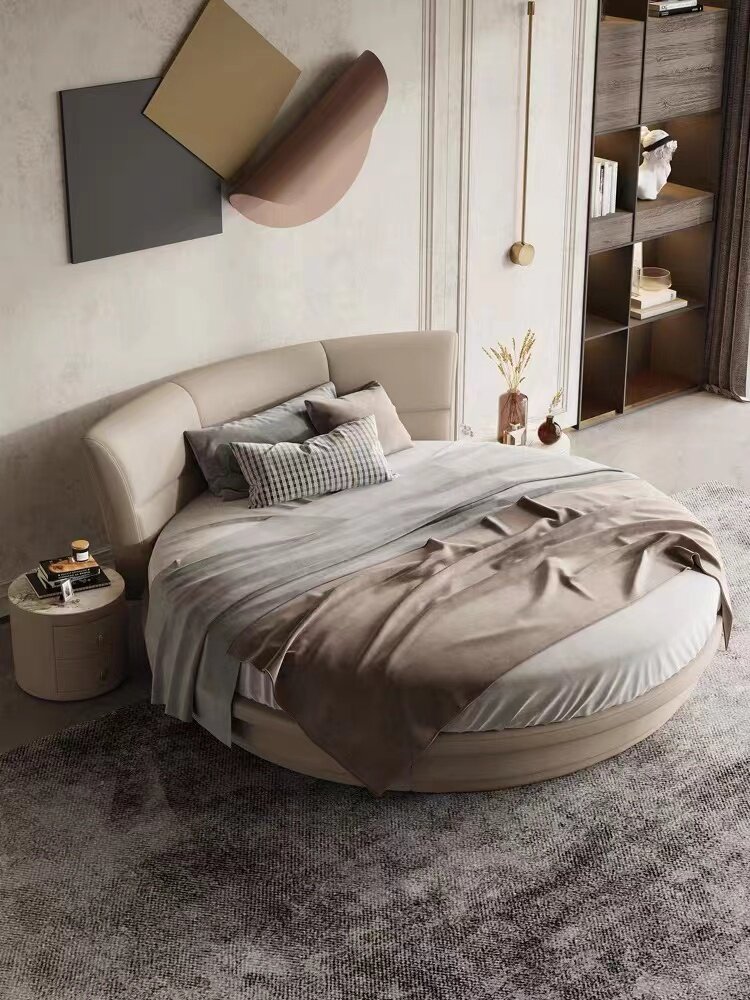 大圆床双人现代简约轻奢浪漫公主卧真皮豪华圆形情侣意式酒店婚床