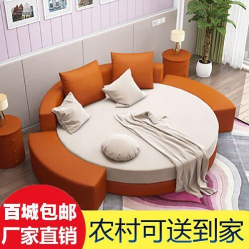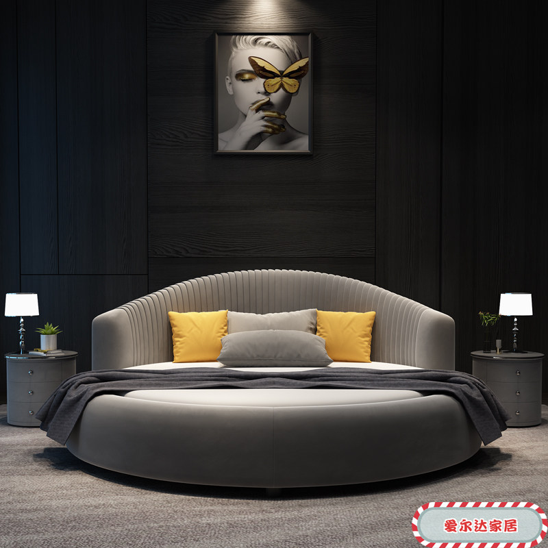 大圆床欧式现代简约双人真皮主题宾馆网红公主卧情侣酒店圆形婚床