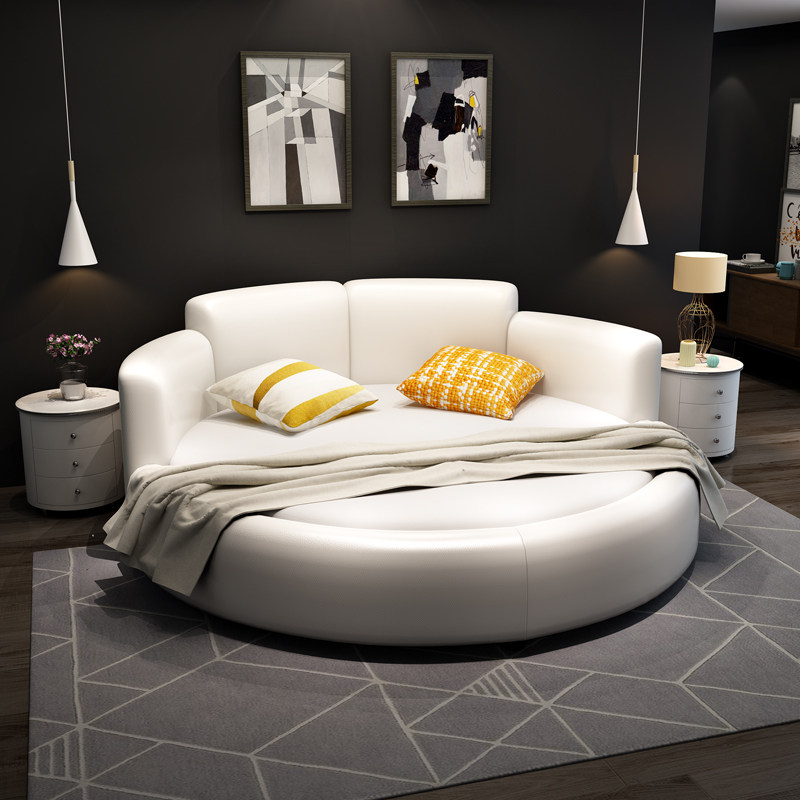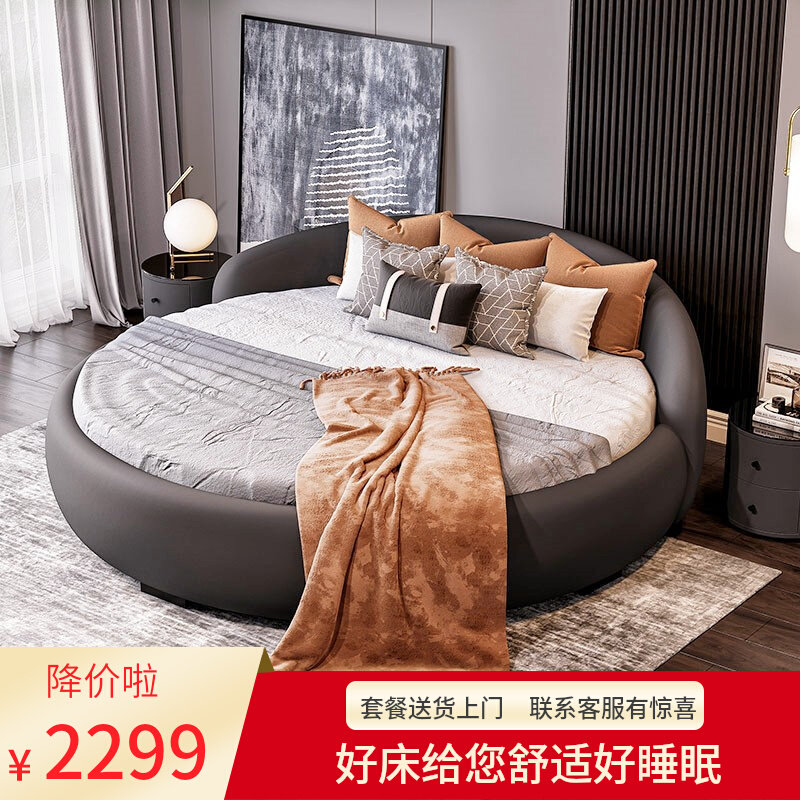 大圆床真皮床现代简约小户型圆形欧式情侣酒店公主卧双人网红婚床