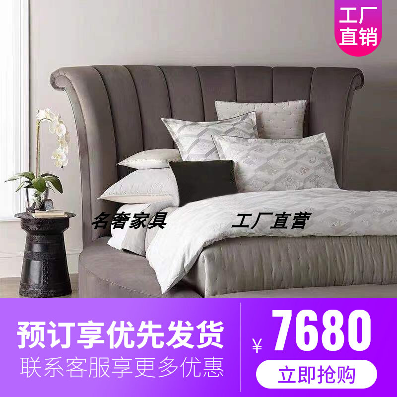 塞纳布艺圆床ins奶油风双人婚床现代简约家用酒店主卧公主大圆床