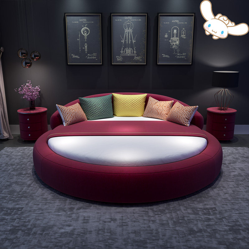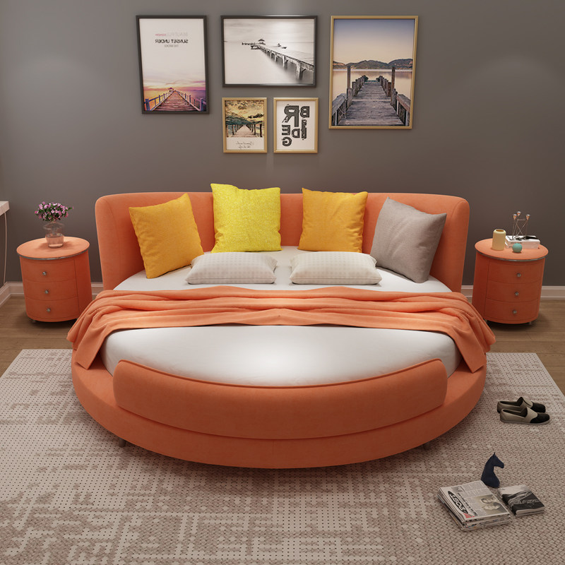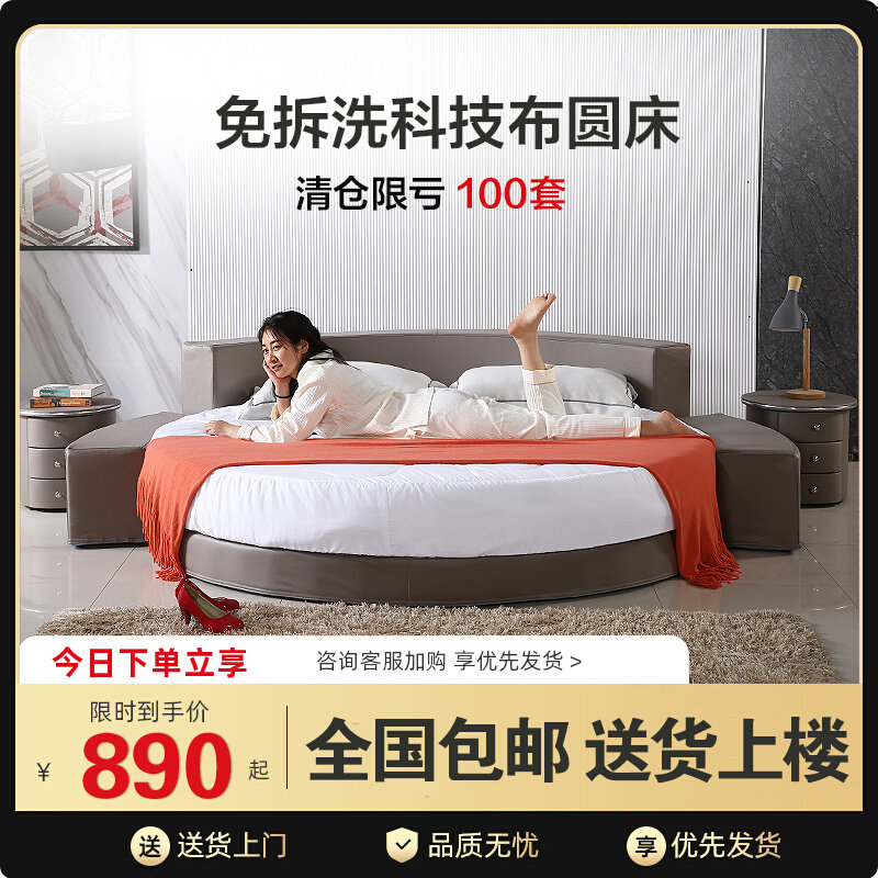 免洗科技布圆床现代简约圆形双人2m婚床公主床主题酒店情侣布艺床