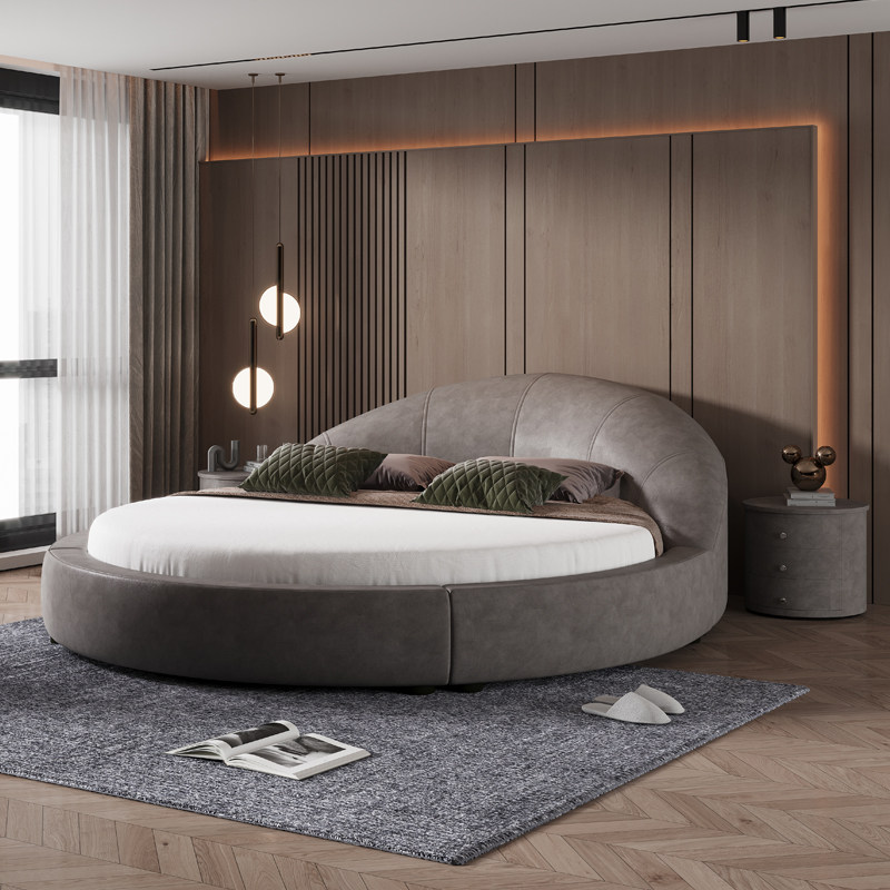 意式极简圆床双人床豪华主卧现代简约真皮北欧轻奢大户型公主婚床