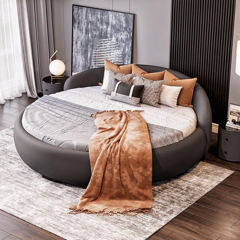 真皮大圆床双人床现代简约豪华主卧圆形公主婚床酒店情侣网红圆床