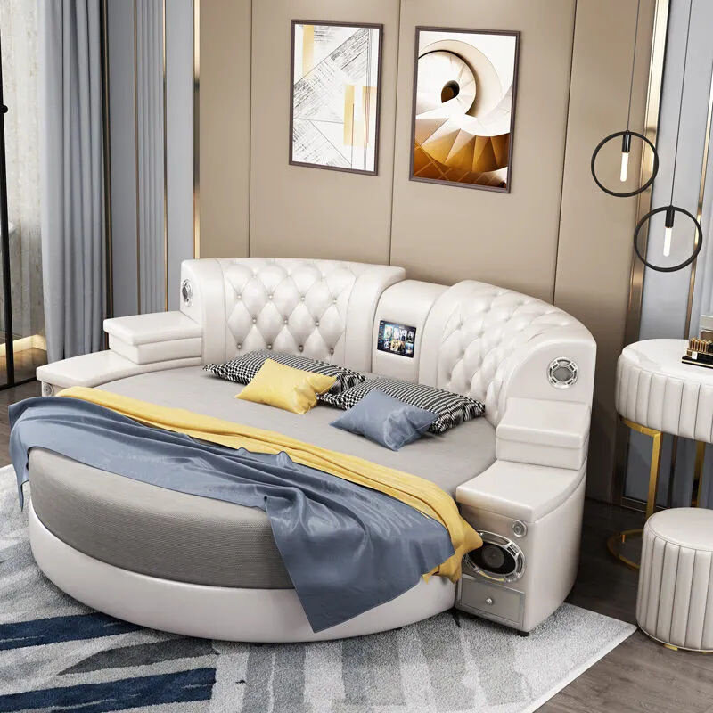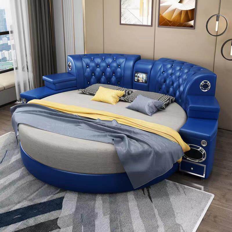 大圆床真皮双人床2.2米欧式酒店皮艺圆形床音响软体床公主婚床