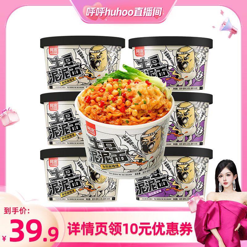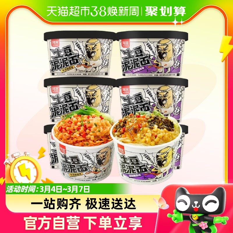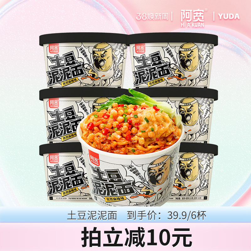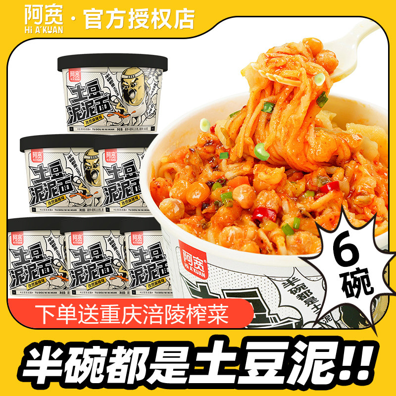 阿宽土豆泥泥面 115g*6桶 孜然麻辣味土豆泥拌面速食泡面宿舍家庭