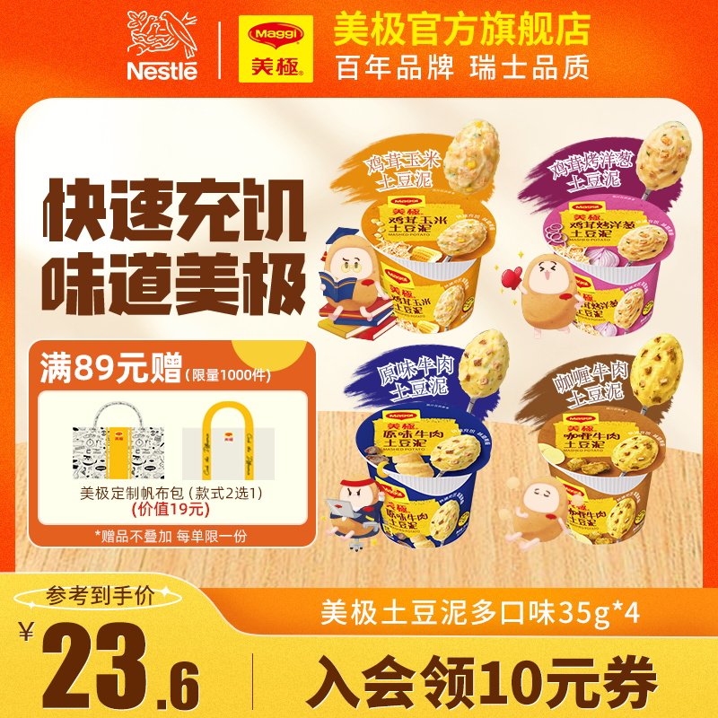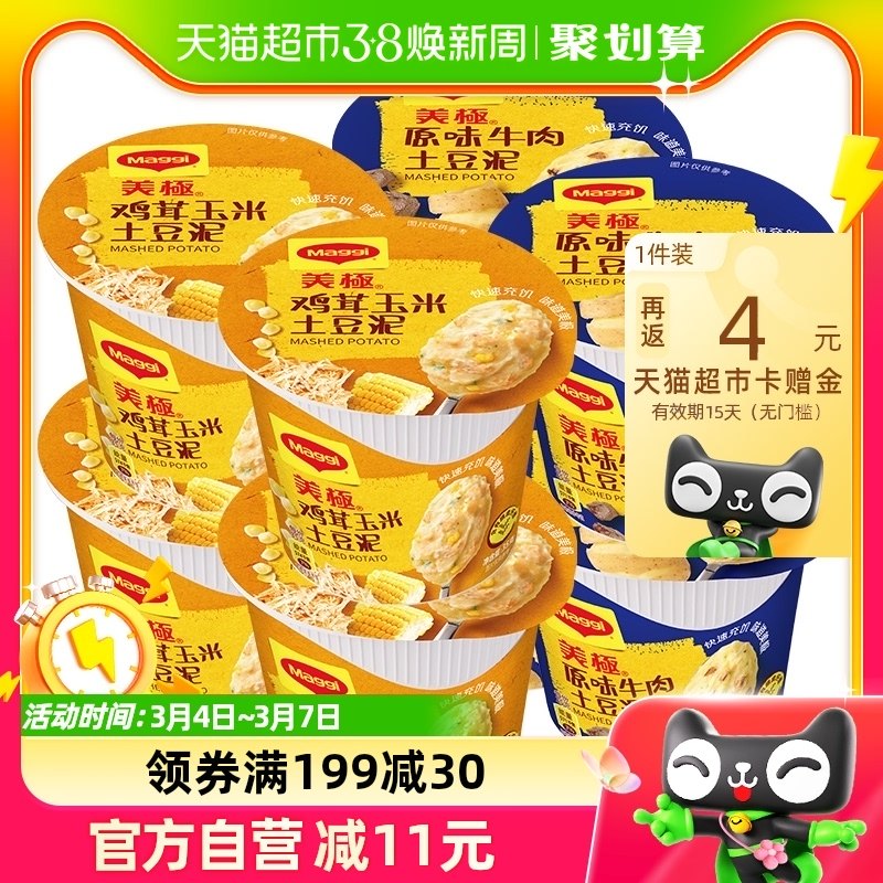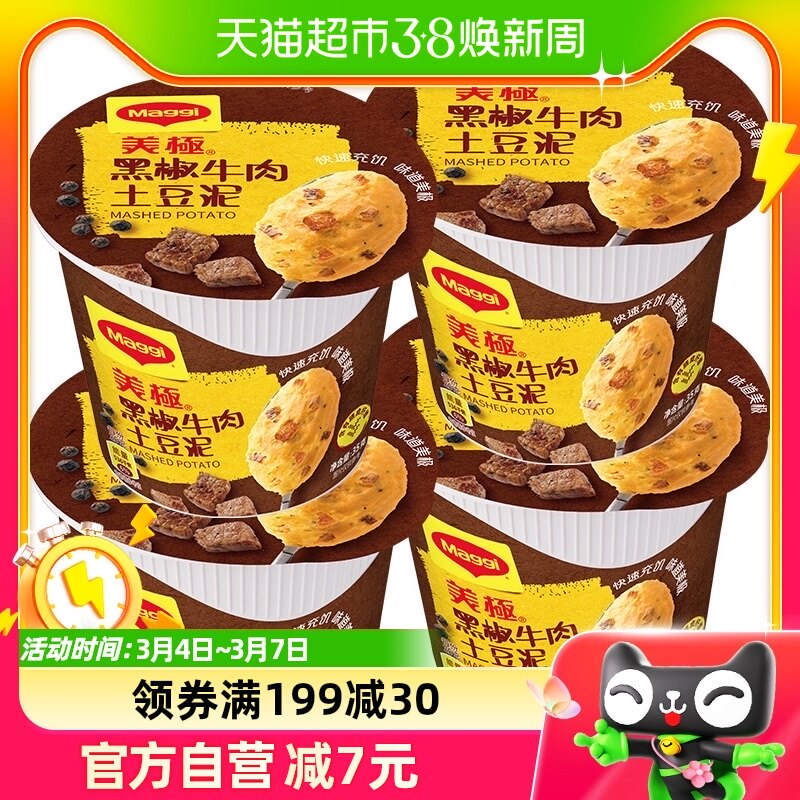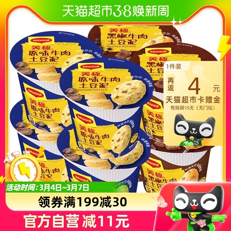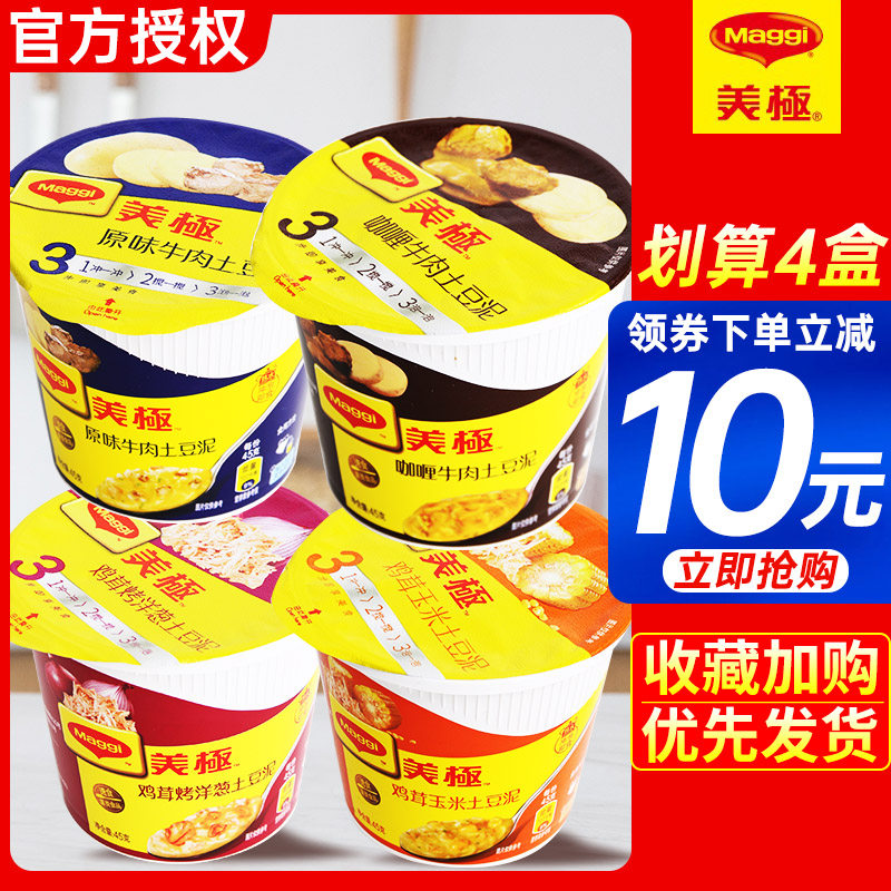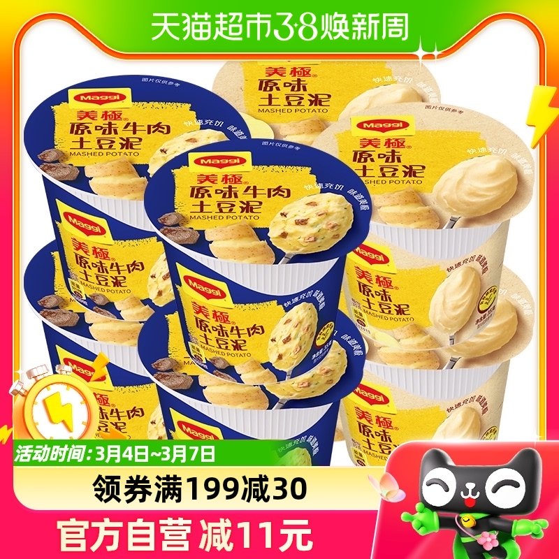 雀巢出品美极原味牛肉土豆泥35g*4盒早餐夜宵速食代晚餐零食组合